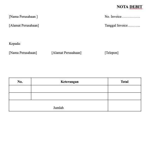 Contoh Invoice Debit