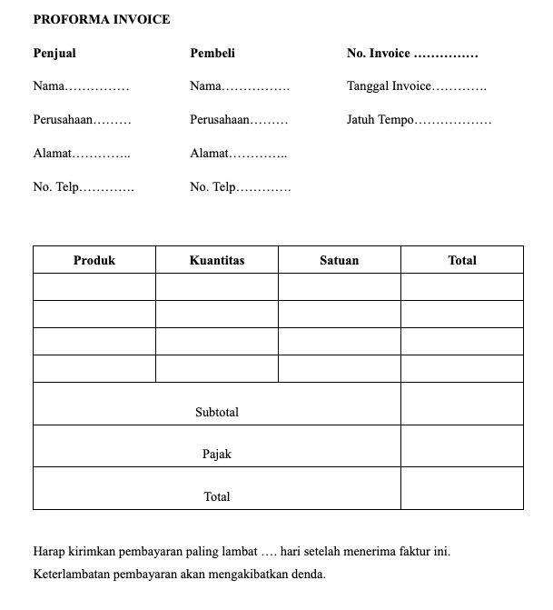 Contoh Invoice Proforma